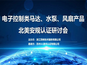 熱烈祝賀電子控制類(lèi)馬達(dá)、水泵、風(fēng)扇產(chǎn)品北美安規(guī)認(rèn)證研討會(huì)圓滿落幕! 2024年6月6日,浙江頂峰技術(shù)服務(wù)有限公司邀請(qǐng)?zhí)K州UL美華認(rèn)證有限公司針對(duì)電子保護(hù)馬達(dá)、風(fēng)機(jī)、水泵產(chǎn)品舉行了北美安規(guī)認(rèn)證研討會(huì),針對(duì)機(jī)電類(lèi)客戶在安規(guī)認(rèn)證、涉及研... -