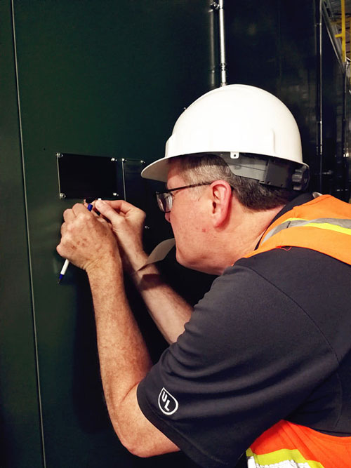 UL工程師William Denton在巨石美國工廠現(xiàn)場加貼評估合格標(biāo)簽